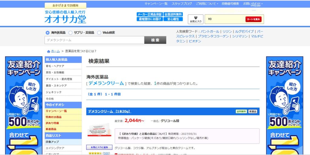 オオサカ堂は、海外医薬品やスキンケア商品を扱う