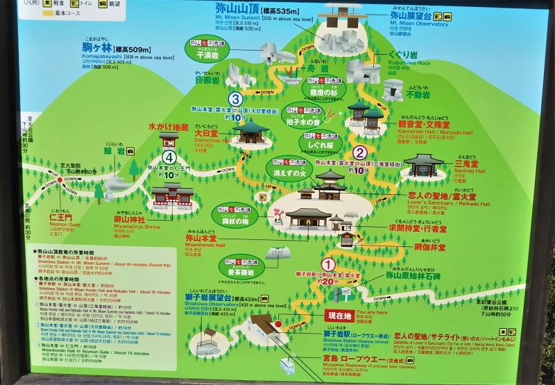今回は、ロープウェーの終点・獅子岩駅から歩いて弥山山頂を目指します。