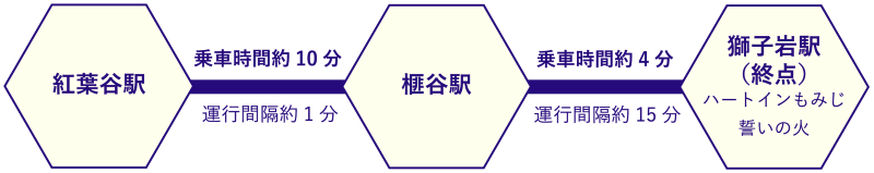 ◎ 紅葉谷駅 ~ 榧谷駅間は、循環式ロープウェー。