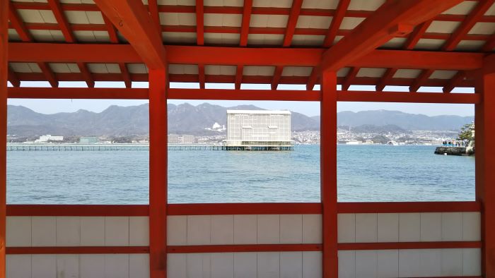 最初はそれを厳島神社の鳥居と勘違いしていました。