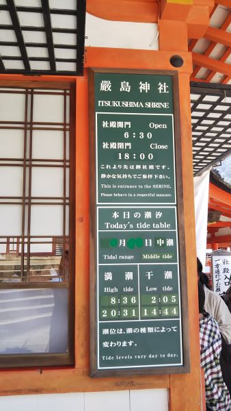 ちゃんとこの時期の満潮時間・干潮時間が掲示されておりました。